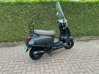 Mat zwarte La Souris. Een mooie mat zwarte scooter van het bouwjaar 2022 en 11853km gereden. Voorzien van hoog windscherm en zwarte valbeugelset. Ook deze scooter is makkelijk van blauw naar geel kenteken te keuren.Prijs: € 725,- Terug